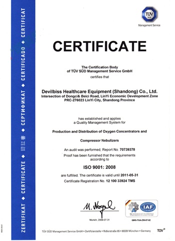 | ★德维比斯系列制氧机国内外医疗器械注册证书 |